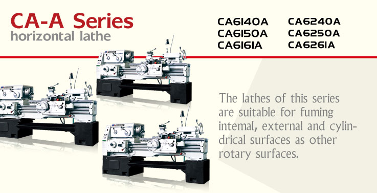 The lathes of this series are suitable for fuming intemal, external and cylindrical surfaces aswell as other rotary surfaces, They can be used for turning different metric, whitworth, module and diametral threads and can also be used for performing reaming and broaching oil grooves etc. FEATURES: CA Series products have been developed on the basis on A model. Btype: spindle bore 80mm, C typespindle bore 104mm, Ftype: hydraulic copying, M type: precision. Being wider than common lathe bed, this kind of lathes are with higher rigidity. Hardened by means of middle-frequency in duction method, the guideway surfaces of the beds are durable. The construction rigidity and driving rigidity of this kind of lathe are higher than the rigidity of common lathes. With higher power utilization ratio, the lathes are suitable for heavy and high speed cutting operations. The spindle bore of the lathe of this kind is larger and the accessories of which can complete your choice.