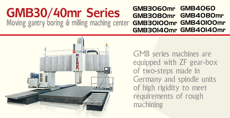 GMB series machines are equipped with ZF gear-box of two-steps made in Germany and spindle units of high rigidity to meet requirements of rough machining with large torque in low speed, as well as precision machining with high speed. The design of cross beam in large section area and guide-ways of step construction have been combined perfectly to increase stability during cutting. The machines can be equipped with different accessories such as high rigidity milling head to realize five-side machining.