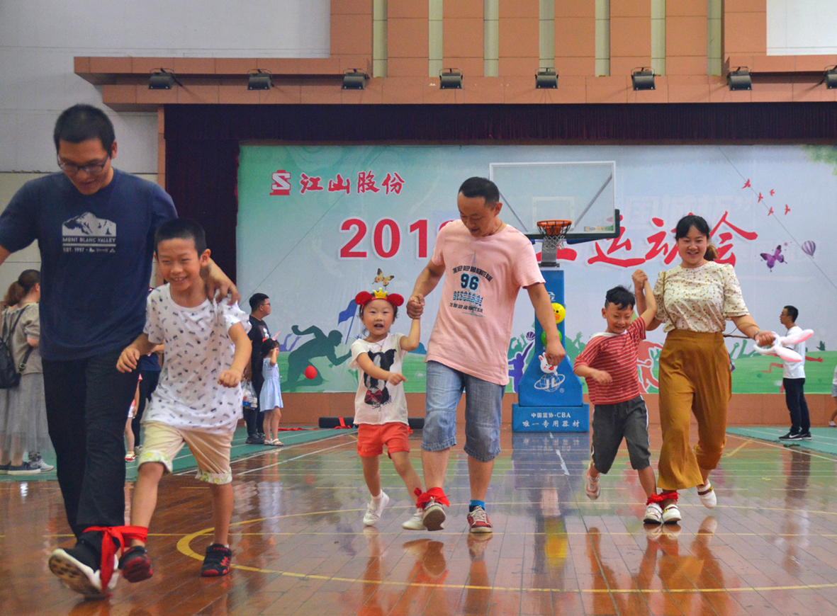 兩人三足、猴子倒掛、踩石頭過河、耳語傳話、揪尾巴、小小纖夫……在快節(jié)奏的生活中,難得的親子趣味運動時光讓江山股份文體活動中心充滿了歡聲笑語。
