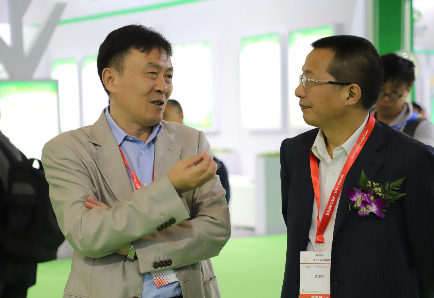展臺上薛總與農(nóng)業(yè)部農(nóng)藥檢定所黨委書記吳國強親切交談