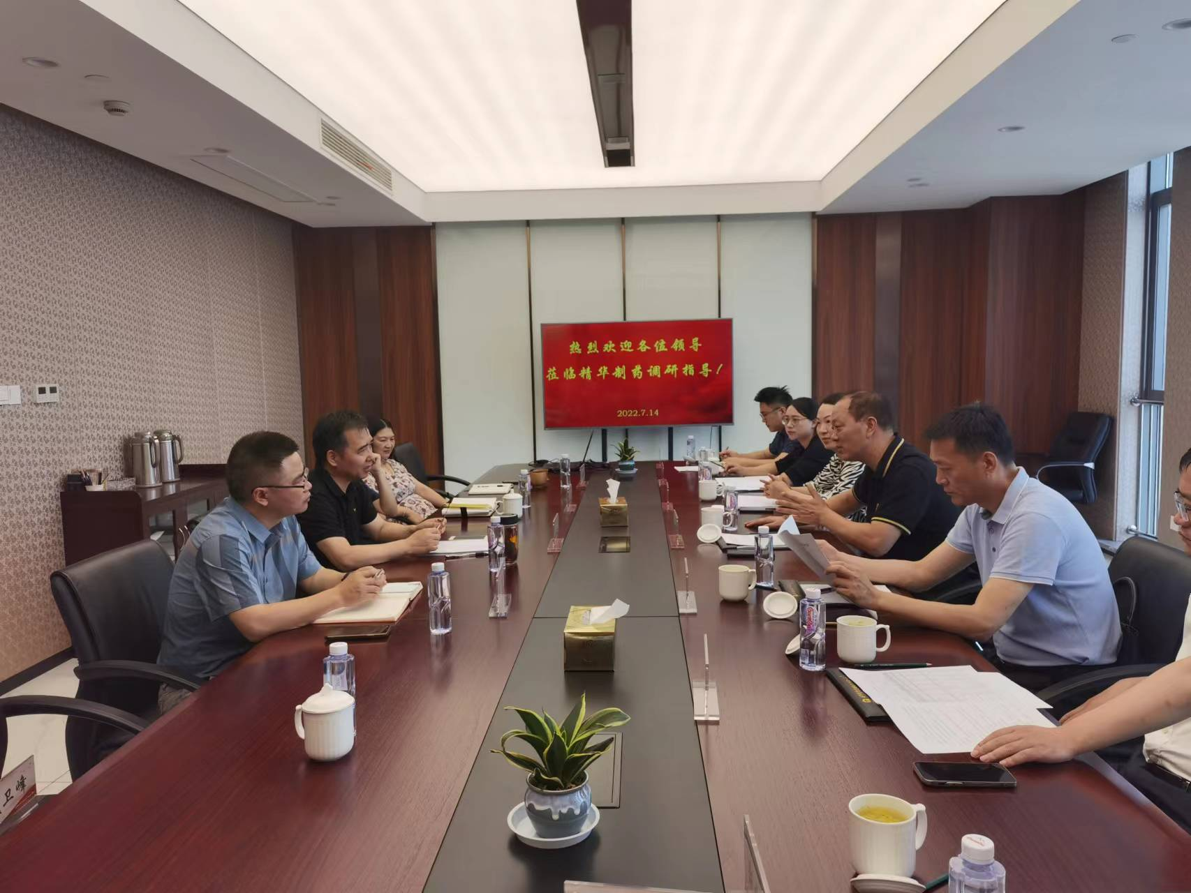 7月14日,產(chǎn)控集團(tuán)總經(jīng)理顧建國、副總經(jīng)理陳云光、副總經(jīng)理陳弘穎一行冒著炎炎酷暑來到精華制藥集團(tuán)調(diào)研,重點(diǎn)了解了企業(yè)上半年的運(yùn)營工作,并就下一步精華制藥運(yùn)營發(fā)展等方面進(jìn)行研究指導(dǎo)。