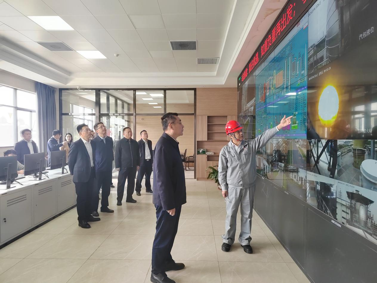 426日,南通市副市長凌屹帶領(lǐng)市工信局、市生態(tài)環(huán)境局等部門相關(guān)負責同志到江山股份開展安全檢查。江山股份黨委書記劉為東陪作安全工作匯報。